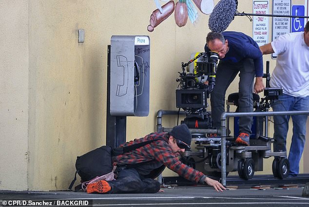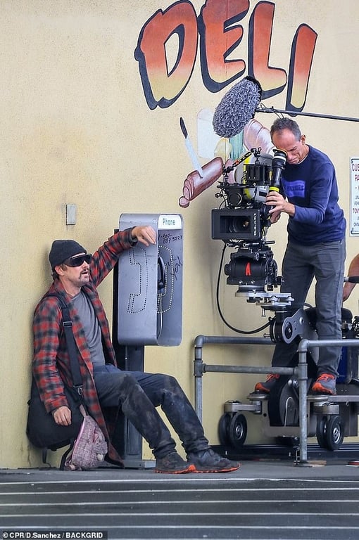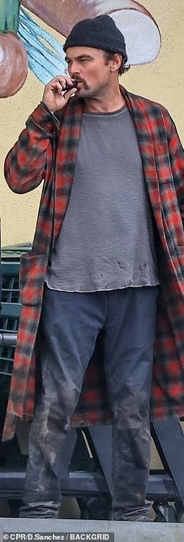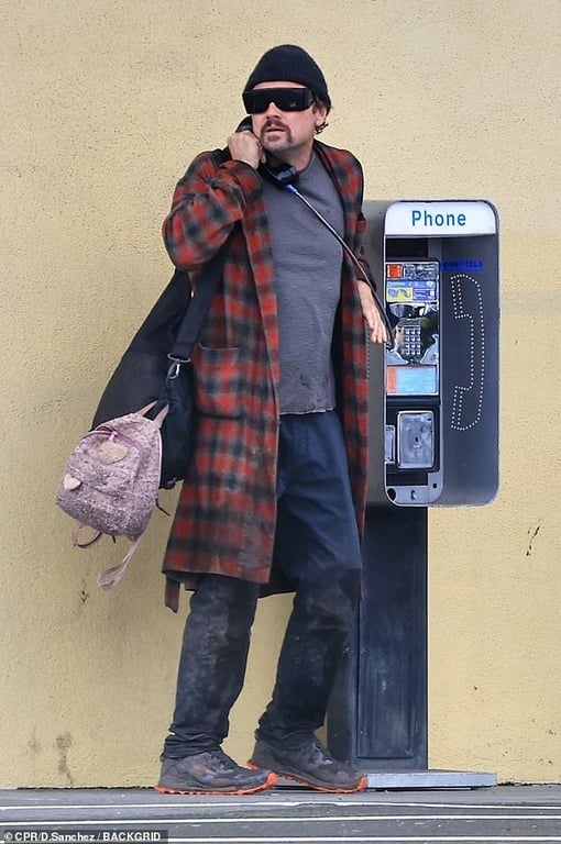 49-летний Ди Каприо работал на съемочной площадке в грязном костюме, состоявшем из халата и джинсов, а также в больших солнцезащитных очках и серой шапочке. Актер снимался в северокалифорнийском городке Юрека. Персонаж Ди Каприо, похоже, пережил трудные времена. На фото он звонит по телефону-автомату и падает на пол с разбитым лицом. За кадром Ди Каприо также видели во время разговора с Андерсоном.