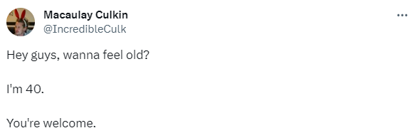 "Хотите почувствовать себя старыми? Мне 40. Не благодарите", — написал на своей странице в Twitter Маколей Калкин.