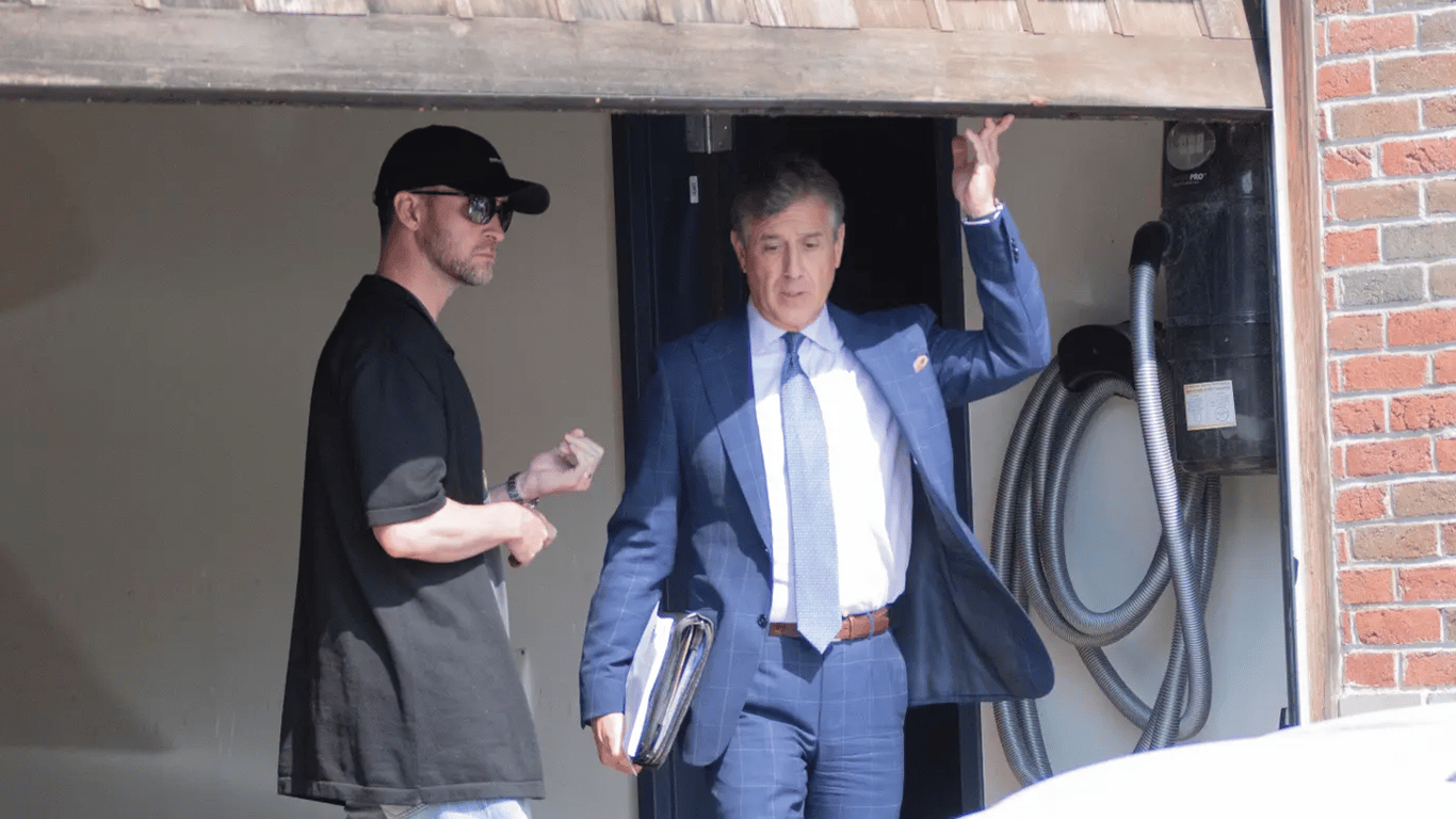 Джастин Тимберлейк со своим адвокатом. Фото: Doug Kuntz