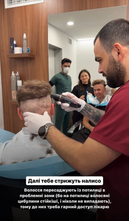 Всю процедуру з подробицями Богдан показав у сторіс в Instagram. Наразі його волосся частково збрили, а нове — приживається. Результатами ведучий поділиться пізніше.