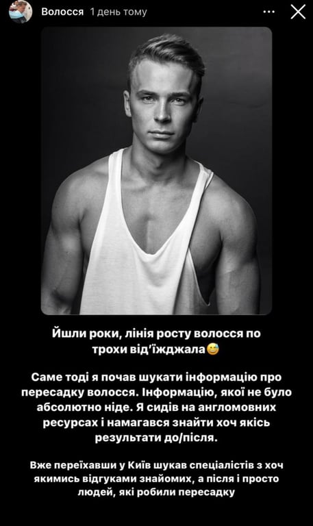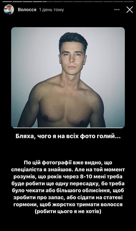 Тепер наважився на другу, адже волосся помітно порідшало, особливо після нещодавнього захворювання. Про процедуру вирішив розповісти у соціальних мережах, адже багато хто з чоловіків має таку проблему.