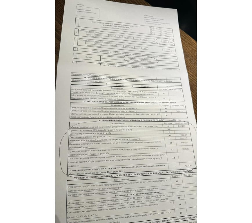 "У декларації на фото показано, що ви сплачуєте 5% податку, тобто це спрощена система. ФОПи-спрощенці не мають права створювати предмети мистецтва і бути спрощенцями, продаж картин і предметів мистецтва дозволено тільки на загальній групі 18% і 22% ЄСВ. І фото декларації, яка містить таку інформацію, є свідченням про ухиляння від сплати податків у повному обсязі, як того потребує законодавство України".