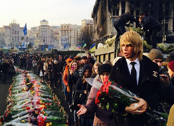 Сергій Звєрєв у 2015 кладе квіти у пам'ять Небесної сотні. Фото: Instagram